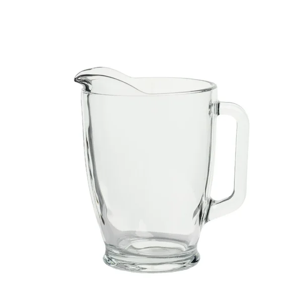 The ergonomic design features a sturdy handle and a smooth pour spout for easy handling and spill-free serving. Its crystal-clear appearance adds a touch of sophistication, ensuring it blends seamlessly with your event decor.