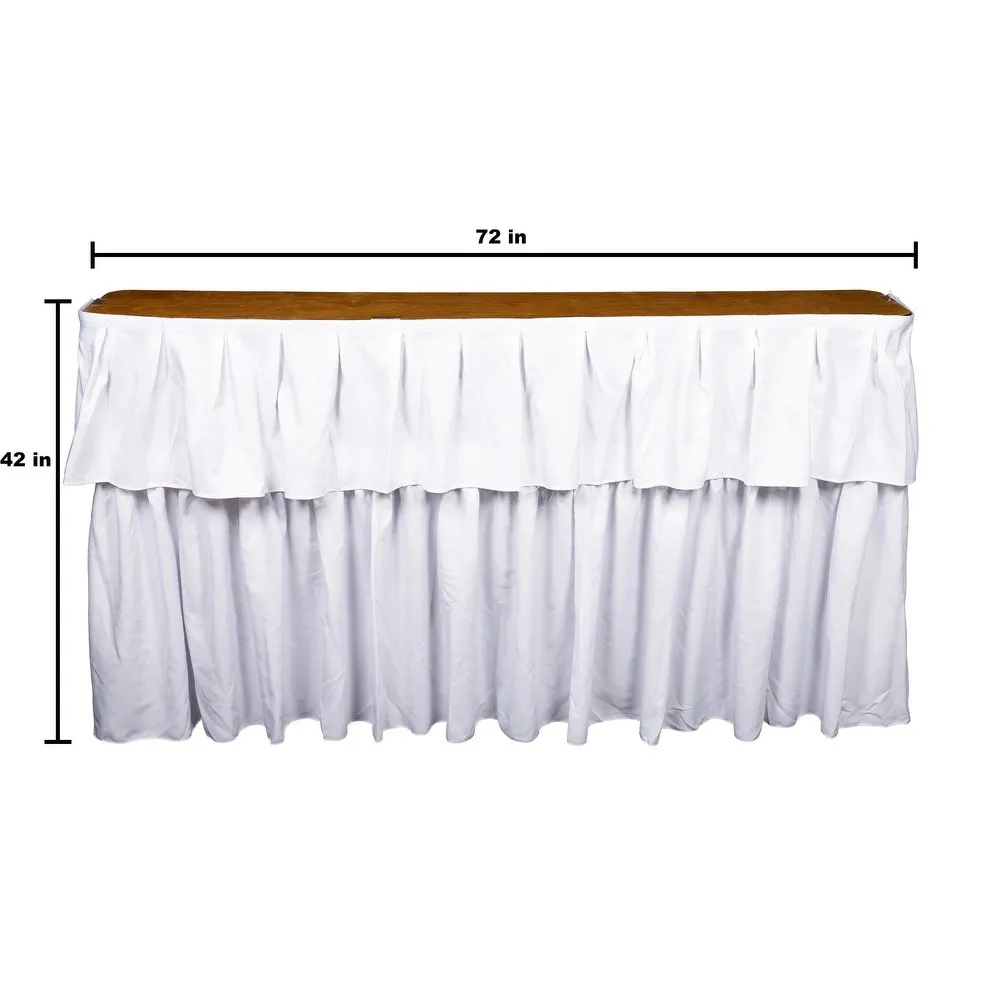This versatile and elegant 6ft bar with a white skirt is perfect for weddings, corporate events, parties, and other special occasions. Its sleek design, complemented by a white skirt, brings a clean, polished look to any event, seamlessly blending with your decor.